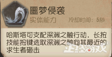 一技能“噩梦侵袭”就是操作视野里的触手来抽打求生者。