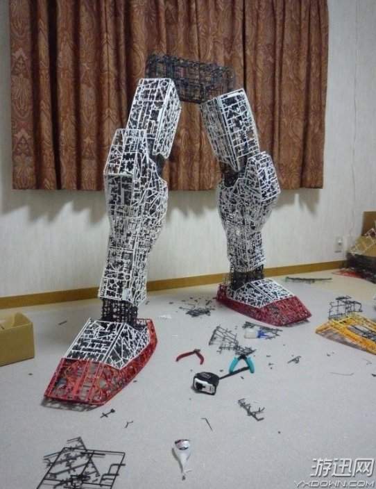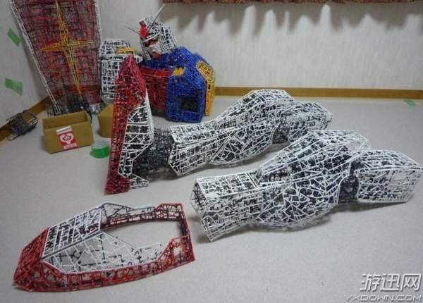 热爱组装模型的小伙们,肯定家中有不少塑料框架废料。这些本来是固定模型零件的,组装完成后就没什么用了,想必大家一定都当垃圾扔了吧,不过日本有位大神却搜集了一大堆塑料框架制作了一个高达!