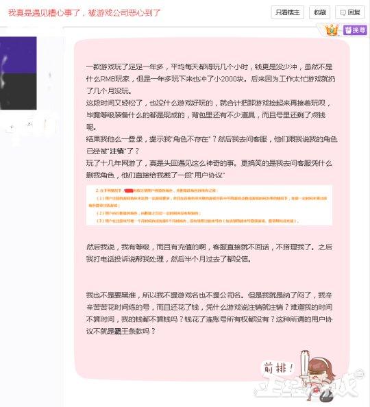正经小弟只能说,用户协议上已经签字了,点了那个“同意”按钮,这就代表玩家在进入游戏之前就已经接受游戏公司的条款,所以人家有权利按照协议内容的约定把你的账号注销了。
