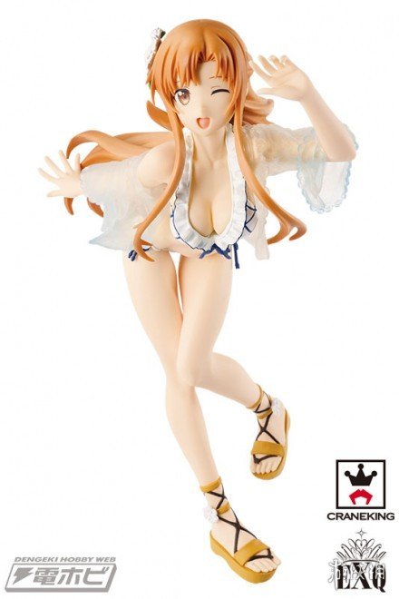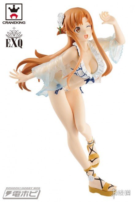 《刀剑神域》中女神亚丝娜无论在哪方面都能称得上是劳模,有关她的作品不计其数。近日又有一款亚丝娜泳装手办公开了,身着蓝白条比基尼泳装的亚丝娜登场,外面的透明防晒衣也是相当引人遐想。姿势极其诱人,好身材一览无遗,豪胸、细腰还有让人欲罢不能的雪白肌肤和大长腿。