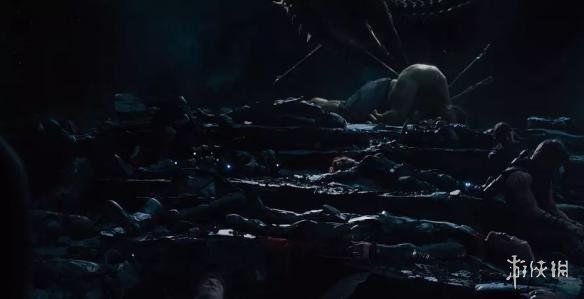 而钢铁侠呢,他看到了复仇者团灭的场景。绿巨人、雷神、美国队长、黑寡妇、鹰眼全部倒地牺牲。另外,还有一个齐塔瑞飞船绕过钢铁侠的头顶。