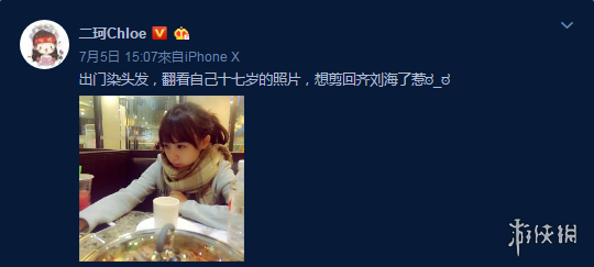 昨日,斗鱼女主播周二珂在微博晒出了自己十七岁时的照片,并感叹道“出门染头发,翻看自己十七岁的照片,想剪回齐刘海了惹”!