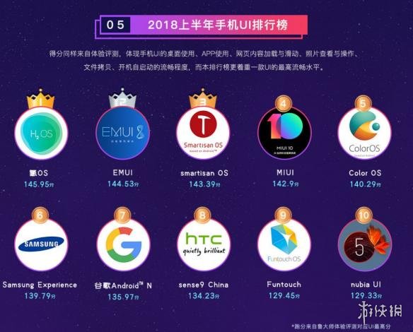 UI排行榜第一为氢OS,之后为EMUI和smartisan OS,小米的MIUI排第四。
