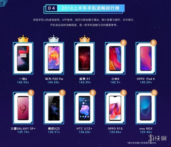 按流畅排行版来看,排在第一的是一加6,其次是华为P20 Pro,之后是坚果R1。流畅排行榜体现手机UI的桌面使用、APP使用、网页内容加载与滑动,开机自启动流畅程度等。
