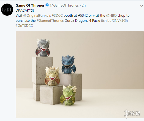 日前,《权力的游戏》官方公布了全新周边产品,包含艾莉亚,瑟曦,白鬼1/6手办,Q版龙手办以及兰尼斯特和斯塔克家族标致。目前这些周边产品已经在圣地亚哥漫展上开卖,现场还包含一个1:1的“铁王座”,在场的朋友可以前去观摩。