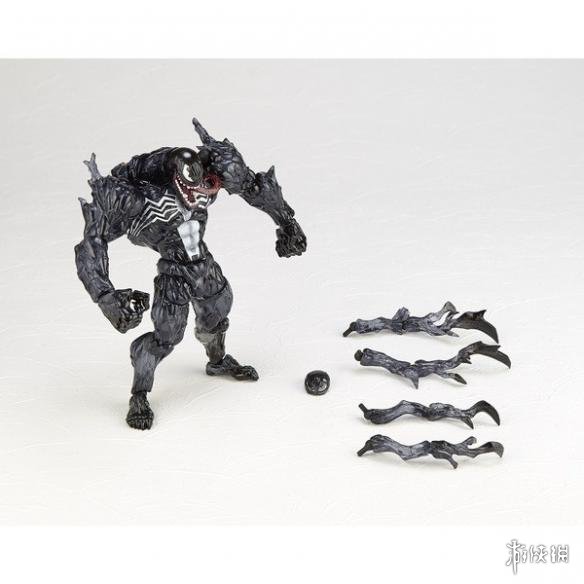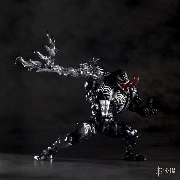 这次推出的“mecomi Yamaguchi 003EX 毒液”与前作相同有着令人惊艳的可动性,连肩胛骨、下颚、舌头、五根手指都是可动的!能重现各种充满张力与魄力的战斗姿态。而身上的肌肉线条、血管、突起物等造型精密,并使用透明材质再加上亮黑的色彩涂装,而配件附有四个分裂出来的共生体(Symbiote)零件,能装在毒液背上的四个孔洞,而共生体零件也能延伸长度或装在腕部,玩法非常多样。