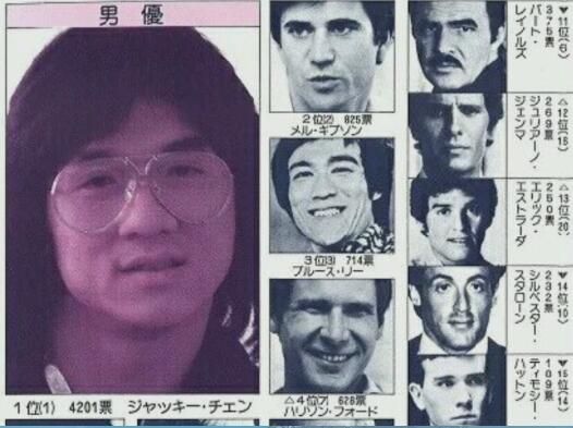 当时的日本国外明星人气投票,成龙的人气足足超了第二名的五倍。