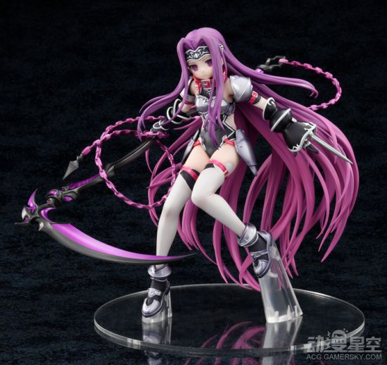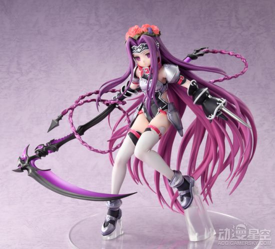 在《Fate/Grand Order》中登场的Servant美杜莎,职阶为Lancer。她以猫耳少女的形象登场,受到了无数男性的喜爱。这次新推出的手办展现了美杜莎第一降临和第二降临的两种姿态,身着猫耳披风的少女手持镰刀,面无表情却十分动人。第二降临则是脱去了披风,将战甲完全展露,搭配白丝真是格外诱人。除此之外,还搭配有头戴花环,更显清纯气质。