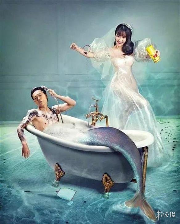 还有加入了特效的“美人鱼”风婚纱照,这画风比很多五毛特效电影来的都好。