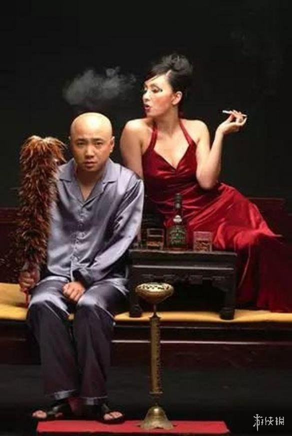 这张则有海报的感觉,陶虹穿着红色的露肩裙子喷着烟,而徐峥则一脸惊悚地坐在旁边。每一张婚纱照的意境都不一样啊!