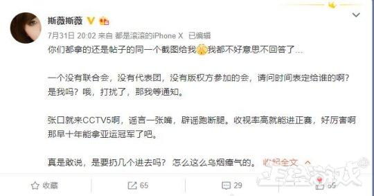 就在大家猜测这次的比赛结果以及央视的解说会是谁的时候,国内亚运会电竞相关赛事的工作人员(微博名@斯薇斯薇)发布了一条微博对于这件爆料进行了辟谣。
