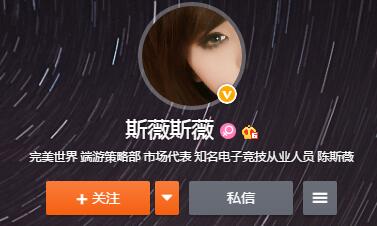斯薇姐姐是完美世界端游策略部的市场代表,也是知名电子竞技从业人员,她的身份同样也在微博上进行了认证。