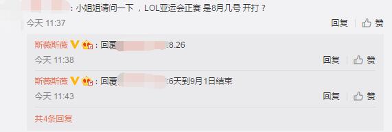 另外,小姐姐还透露,LOL亚运会正式比赛的时间是在8月26日开赛,到9月1日结束。如无意外和不可抗力发生,基本就是这个时间了!