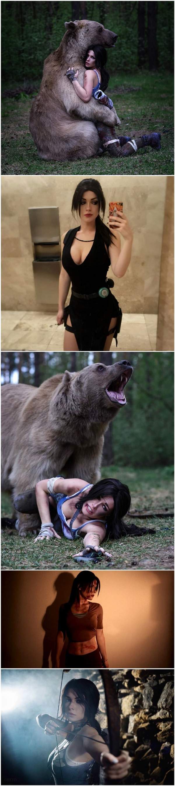近日,俄罗斯模特Irine Meier晒出了《古墓丽影》历代劳拉·克劳馥的Cosplay合集,傲人大胸肌堪称神还原(虽然不是三角形的),而且,为了保证特效质量,小姐姐还专门找了只熊出镜,不愧是战斗民族!