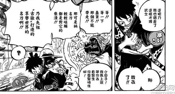狛千代好像非常焦躁,它叼起路飞和索隆就跑走了,似乎在说,小玉的情况越来越恶化,必须快点带她去看医生。霍金斯又拿出一张卡牌,拿出的是法王的逆位,追击牌,路飞、索隆二人登上狛千代迎击。