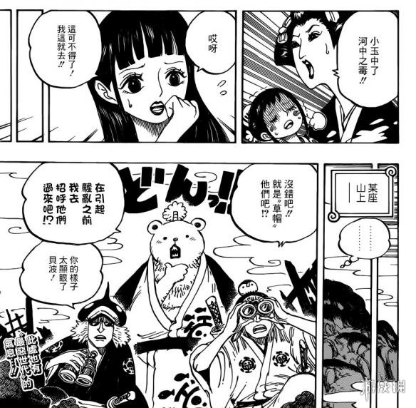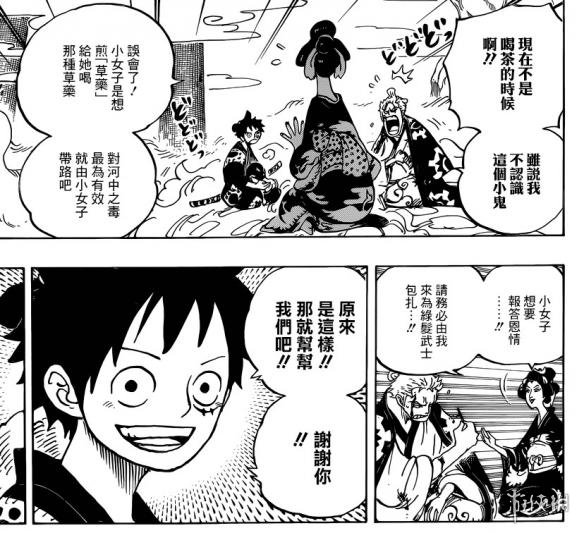 面对这样的强敌,索隆表现的非常兴奋,这时候霍金斯又开始抽卡,不过因为抽到“内讧”卡,导致自己的部下开始互砍...而小玉的病情已经不能再拖下去了,狛千代带着路飞、小玉他们逃离,霍金斯占卜到他们会被人帮助逃走,索性放弃了追击。这时候之前被索隆救下的女子突然现身,并且表示她能救小玉。