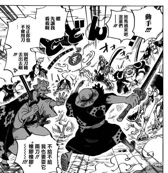 索隆发现路飞的刀不同寻常,路飞告诉索隆这也是一把名刀,不过他已经忘了刀的名字。路飞想要用这把刀砍人,不过使出的依然是他惯用的招式,而粗暴的使用方式也是让索隆心疼不已。