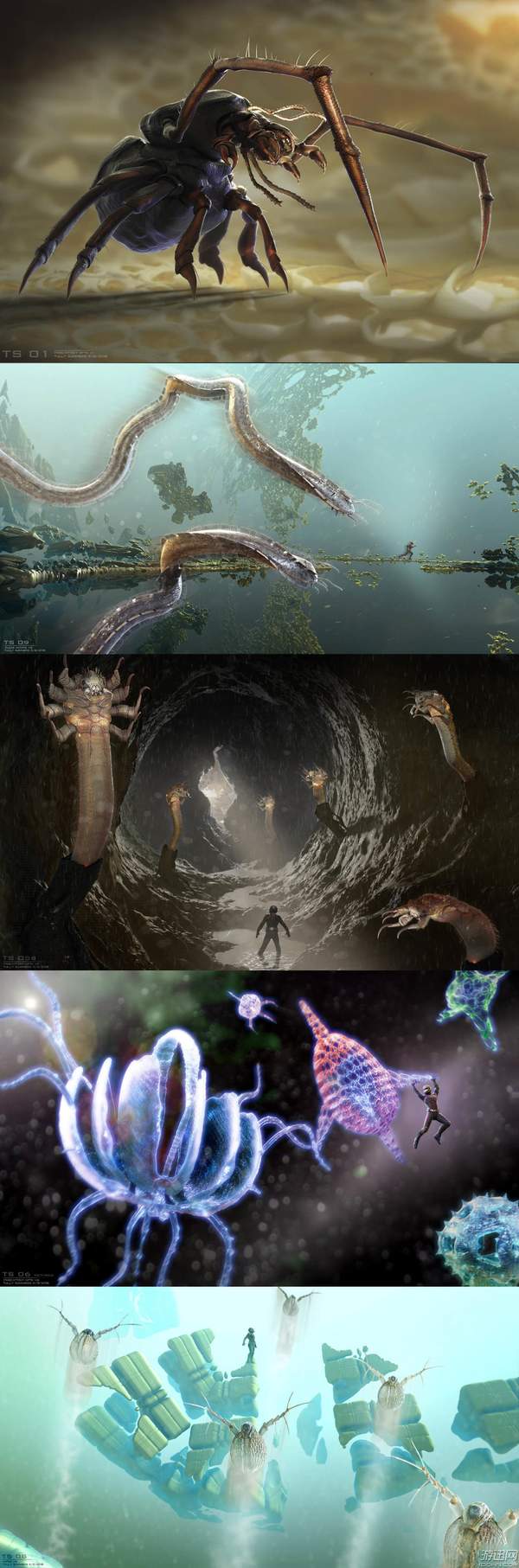 蚁人和黄蜂女在原始设定里一起进入了量子领域,而且量子领域里的微生物比电影里多了不少。这些微生物千奇百怪,有着异形和克苏鲁风,不少人看完这组图后感觉真的有点可怕。