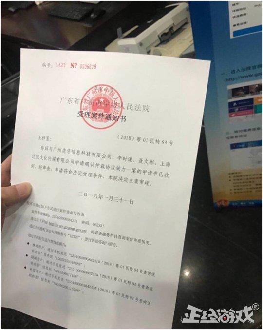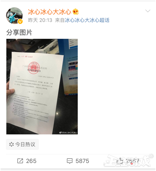 8月6日晚八点左右,冰心晒出法院受理案件通知书,告了虎牙、仙某某等方。