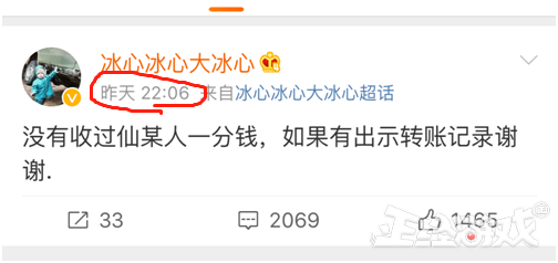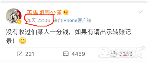 并在22:06分和周公谨在相同时间发了相同的内容:“没有收过仙某人一分钱,如果有出示转账记录谢谢。”