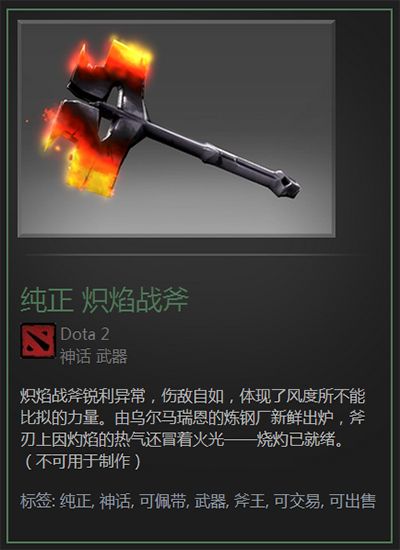炽焰战斧可谓是“亲儿子”斧王最贵,同时也是最装X的一款武器了,无论是红色的粒子自带的火焰,在游戏里的辨识度都是非常之高的。