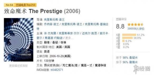 由克里斯托弗·诺兰执导,克里斯蒂安·贝尔、休·杰克曼、迈克尔·凯恩、斯嘉丽·约翰逊、丽贝卡·豪尔等主演的悬疑惊悚片。