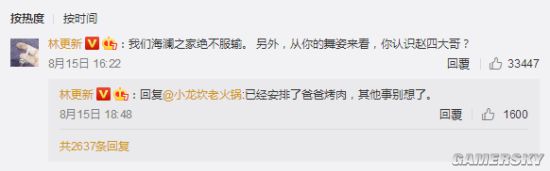盖文这次不仅要去北京参观紫禁城,还要去成都看大熊猫,看来行程还是非常满当的,搞笑的是,林更新还在盖文的这条微博下留言,称海XX家不服(林更新代言),还调侃盖文的舞姿“你认识赵四大哥?”。