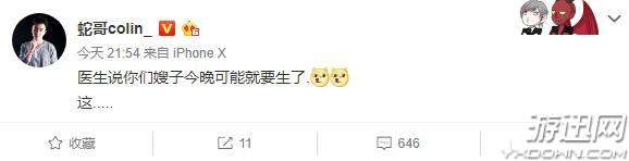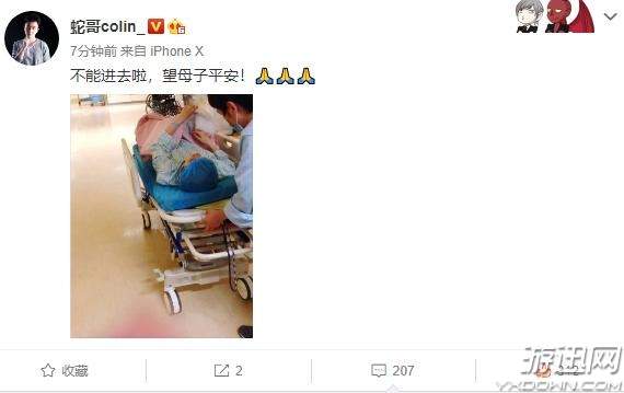 当晚,蛇哥也是在微博中晒出了自己老婆进入接生室的照片,并且表示希望母子平安。