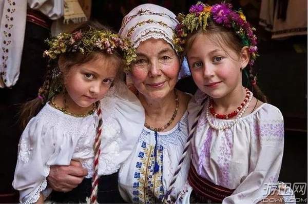摩尔多瓦的传统节日期间,遇到了这祖孙三人,显然,美丽的基因是会遗传的