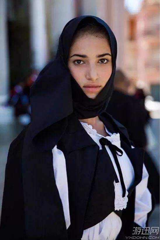 意大利撒丁岛上,这个女孩穿着民族服装——这是她借来的寡妇服装(因为当天她在游行里扮演的是寡妇)