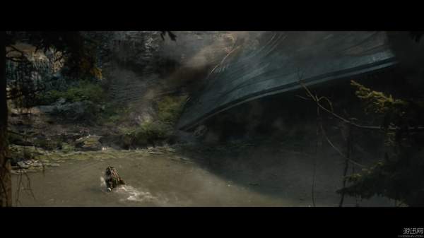 铁血战士宇宙飞船失控落入沼泽森林湖泊