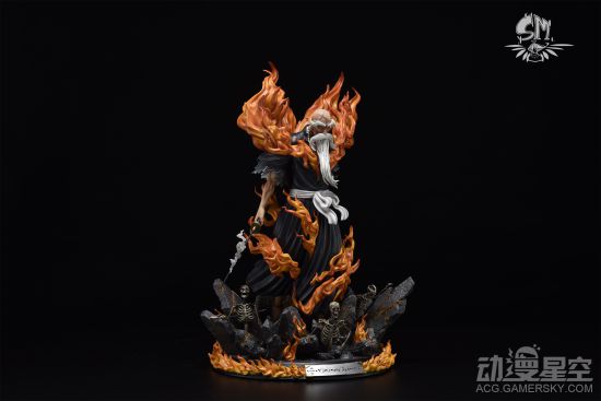 山本元柳斋重国是经典热血漫画《死神》中尸魂界护廷初代一番队队长,这个老爷子是尸魂界护廷十三队的创始人,同时还是初代总队长。也是真央灵术院的创始人,兼初代校长,在尸魂界拥有绝对权威,他的一生几乎等同于尸魂界的历史。他的万解残火太刀释放的时候霸气逼人,各种技能更是有将一切燃烧殆尽的气势。国内工作室Soul maker Studio推出了山本元柳斋重国万解雕像,将残火太刀的霸气完美展现。