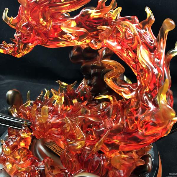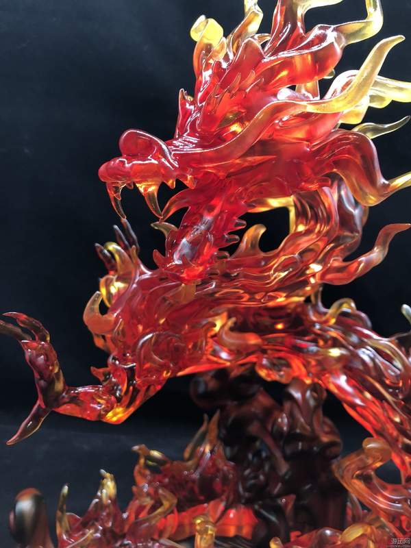 地台的主题是一条拔地而起的火龙,拿在手里十分的有分量。上色方面根据火焰不同的颜色,整条龙看起来并没有什么违和感。值得一提的是,因为龙头和龙神上有很多刺特效件,所以采用了可塑性极高的PU材料,我曾在安装时手滑摔了龙头,一般来说采用树脂材料的话已经粉碎,但是还在PU材料较为柔软,所以轻微的磕碰对它并没有造成什么损坏。