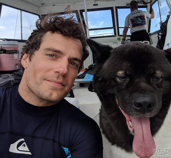 亨利卡维尔与“狗狗”玩耍