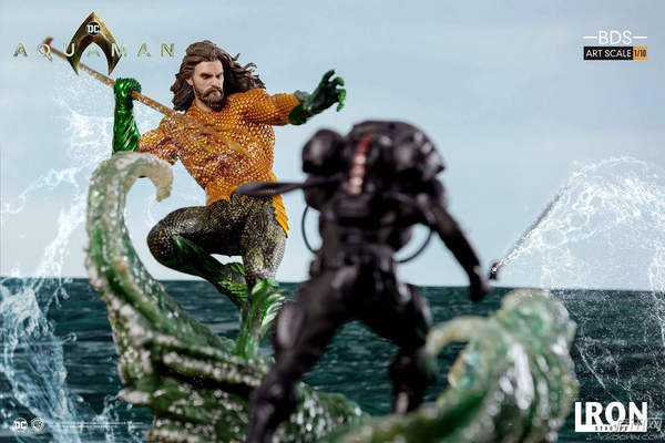《海王》是温子仁导演最新的超级英雄电影,近日雕塑厂Iron Studios公布了关于《海王》的主题雕塑,这次雕塑有两个角色,分别是海王亚瑟和他的宿敌黑蝠鲼,模型将于2019年第二季度发售。