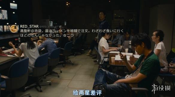 电影主要的视角是由一个赤星雄治提供的,他在电视台工作,做着一些琐碎而边缘的工作,每天只能在网上给拉面店打差评来寻找存在感。