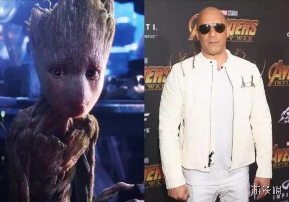 迪塞尔是格鲁特的配音演员,他的动作捕捉是饰演黑矮星的那位演员完成的。看迪塞尔生怕别不知道格鲁特是他配的音,在衣服上插了一大堆小树枝。