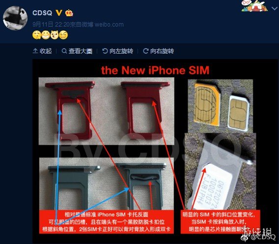 另外,国内微博博主“CDSQ”的曝料信息也VenyaGeskin1的曝料信息一致,新款iPhone将会采用正反双面SIM卡设计。