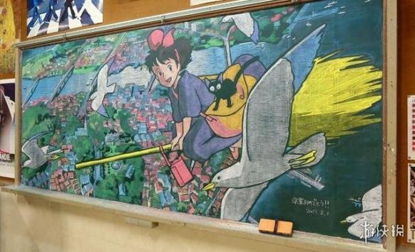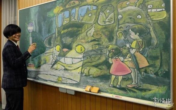 除了绘制《你的名字。》的黑板画外,他曾经为了欢送毕业的学生,在黑板上绘制了宫崎骏老爷子执导的动画电影《魔女宅急便》中主角琪琪坐上扫帚在天空中翱翔的经典画面。这名老师不单单只是绘制跟日本动漫相关的黑板画,他还绘制过欧美动画的黑板画,比如说《美人鱼》,除此之外,他还绘制了经典名画《最后的晚餐》和毕加索的作品,真是让人大开眼界,叹为观止。