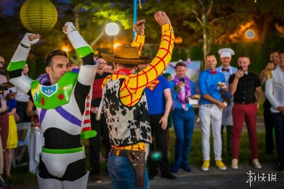 作为《玩具总动员》的好搭档,巴斯光年、伍迪一直是粉丝最爱的角色,近日来自芝加哥的新婚情侣Jason Bitner与Garrett Smith举行了盛大的迪士尼主题婚礼,各自以巴斯光年、伍迪的形象亮相,并且来宾都是来自迪士尼经典的角色,粉丝尖叫场面震撼,很多朋友都看呆了。