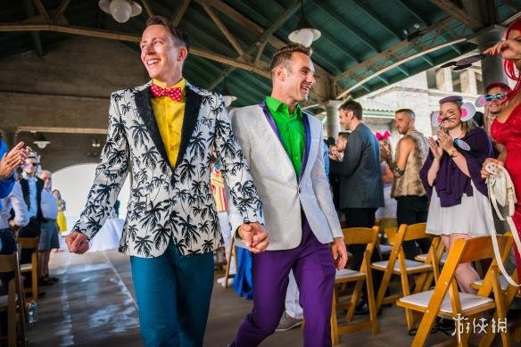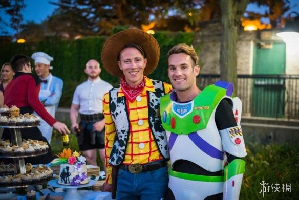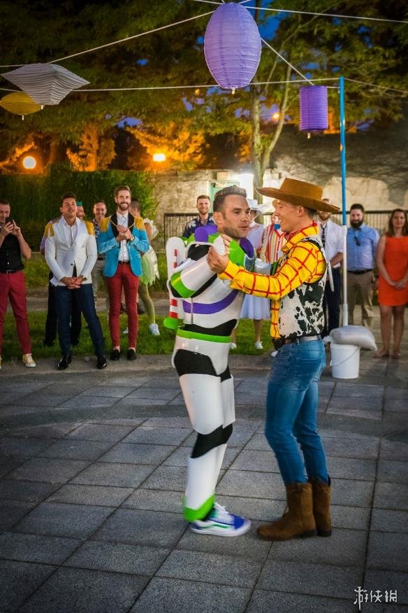 “你是我的朋友,还是丈夫”,正是这对新人借用《玩具总动员》的婚礼誓言,Jason Bitner与Garrett Smith两年前在“迪士尼公园”订婚,这个迪士尼情节一直延续到了现在的迪士尼主题婚礼。只不过与传统的婚礼燕尾服不同,他们选择打扮成他们最爱的角色,太空游侠巴斯光年,以及牛仔伍迪。