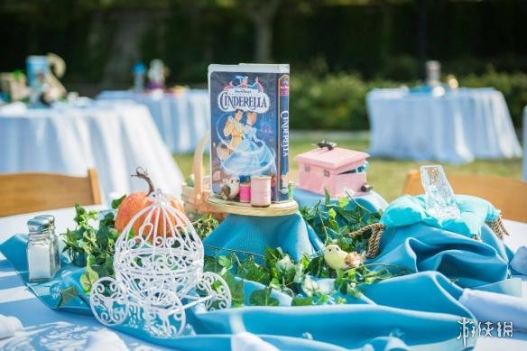 不仅如此,婚礼中心餐桌上还有各种各样的迪士尼电影录影带,比如《狮子王》、《海洋奇缘》,以及各种谷歌文档与Pinterest图画、迪士尼电影模型,可以说这对情侣是真爱铁粉。