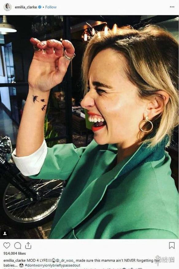 据外媒报道,HBO大热史诗剧集《权力的游戏》即将完结,而参演这部美剧的演员们,也在寻找各种方式来纪念该剧的完结。近日“龙妈”丹妮莉丝·坦格利安的饰演者,好莱坞女星艾米利亚·克拉克就在网上晒出了自己的纪念方式:一个新的纹身。