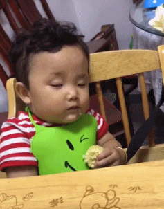 吃着吃着就睡着了,小朋友还真是无忧无虑