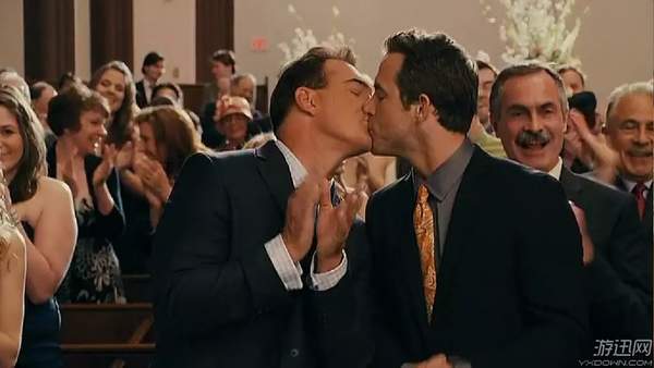 然而瑞恩雷诺兹的荧幕形象就和他最近的“贱贱”一样,不仅与女演员激情缠绵,比如《假结婚》中和桑德拉布洛克湿滑触碰,而且与男演员同样基情绵绵,比如《泰迪熊》客串了一对童年是霸陵少年,长大成为同性夫夫的角色。