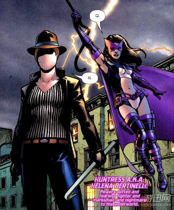 据悉,女猎人”海伦娜·柏特奈尼,哥谭最大黑帮之女,然而家人被害开始展开特工训练,成为女猎人击杀罪犯,随后加入“猛禽小队”之后才将致命手法改成非致命手法对抗犯罪。