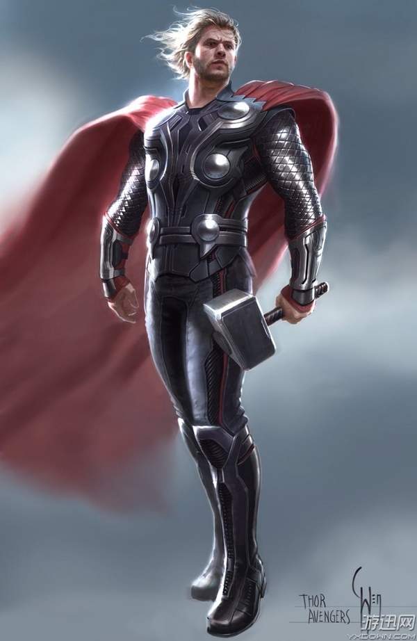 除此之外,还有雷神“索尔”概念图用以表现众人穿越到《复联1》抓捕洛基的早期版本形象。