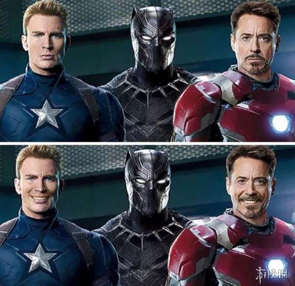 照片里几个著名的超级英雄扮演者被P上了笑容后,变得十分诡异,虽然有点亲切,但却完全没有了超级英雄该有的高贵感啊!反而变得猥琐了??