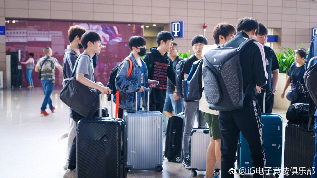 作为LPL一号种子的RNG战队登机,他们正在排公务舱的队,R队员都穿着拖鞋,非常地悠哉,相比IG,就很普通了。