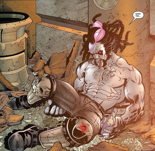 作为宇宙赏金猎人的Lobo不与任何人称兄道弟,为人血腥暴力,喜欢调侃重口段子,这点倒是和贱贱很像,而且经常叼着雪茄杀敌,最爱的是他那辆宇宙摩托。他身高2米,浑身充满筋肉,一身异蓝色皮肤非常凶悍,还当上过美国总统。
